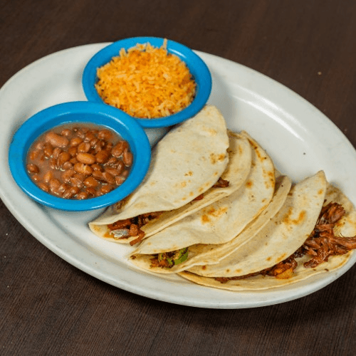 Served with chips and salsa, rice and beans choice of cheese, chicken, ground beef