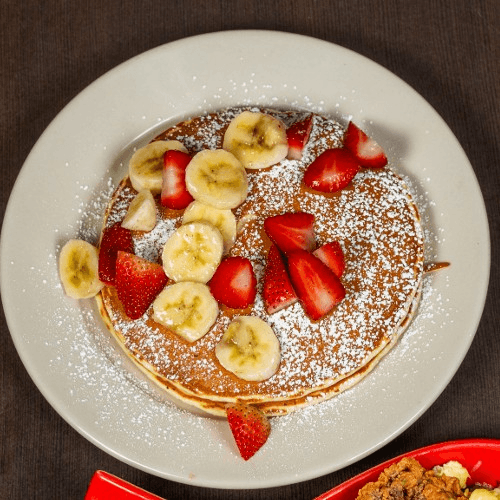 2 pancakes, 2 eggs and choice of bacon or sausage