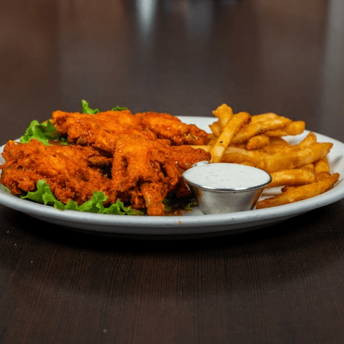 Served with choice of ranch or bleu cheese dressing with French fries